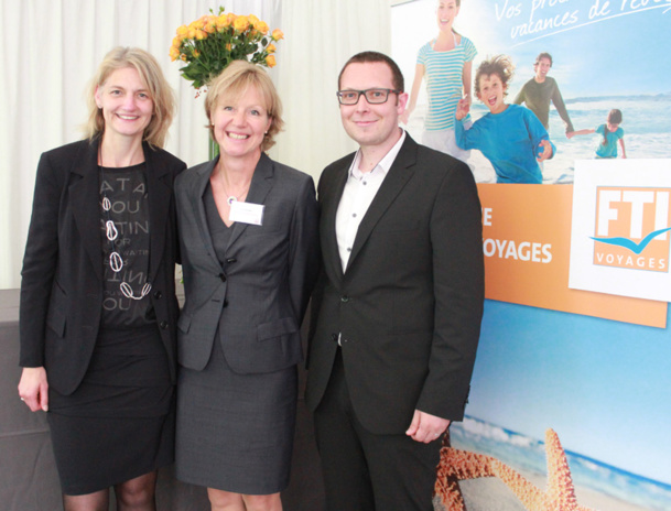 Anke Hsu, DG France, Anne Rösener, la Pdg de FTI Voyages et Thomas Giband, le directeur marketing et back office commercial, lors de la conférence de presse à Paris - DR
