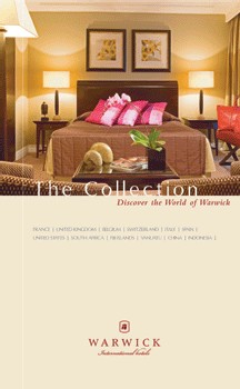 « Tous nos hôtels ne portent pas le nom Warwick, mais qu’ils soient contemporains ou plus classiques, tous répondent aux mêmes critères d’excellence ». Le Directory 2007 s’enrichit du Warwick Melrose Hotel à Dallas, du Warwick Ibah Luxury Villas & Spa à Bali et des nouveaux hôtels affiliés : le New Hotel Of Marseille, les Roches au Lavandou, le Central Plaza à Zurich, le Saturnia & International à Venise et le Kedar Country Hotel en Afrique de Sud.
