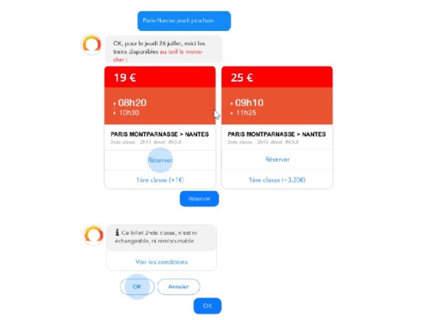 Désormais, grâce à la signature d'un nouveau partenariat stratégique avec Facebook, la plateforme permet à ses clients de réserver et de payer leurs billets de train sur Facebook Messenger, en conversant avec OUIbot.