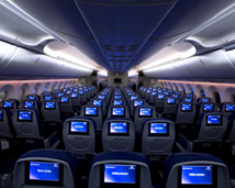 Classe économique du B787-9 : 238 sièges, inclinables à 45°, écran tactile 28 cm.