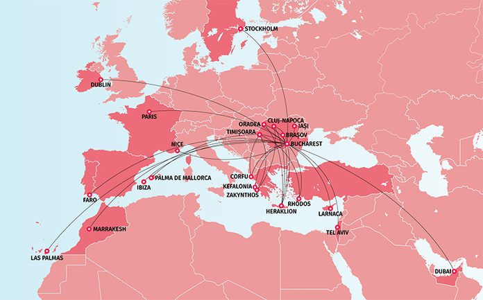 AnimaWings opère également des vols domestiques au départ de Bucarest vers Cluj (CLJ), Iasi (IAS), Oradea (OMR)