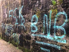 Graffiti contre Airbnb à Annecy.