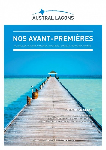 Austral Lagons vient de sortir une brochure « Nos Avant-Premières », en cours de diffusion dans les agences, regroupant les meilleures offres de chaque destination, pour tous les départs à partir du 1er novembre 2018.