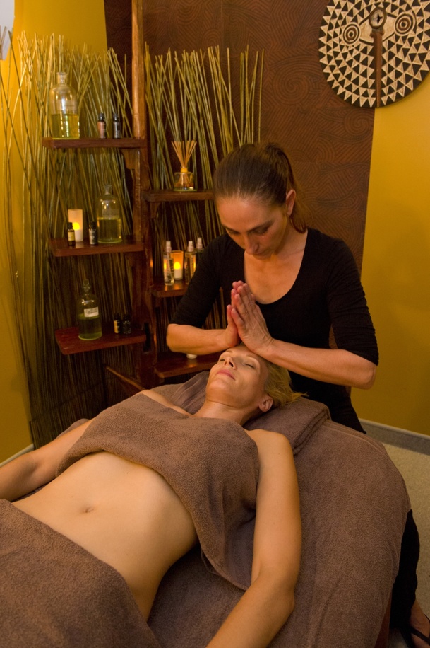 Après un gommage détox aux céréales, le corps est longuement massé avec une huile végétale aux fleurs et à l’aide de pierres volcaniques chaudes.