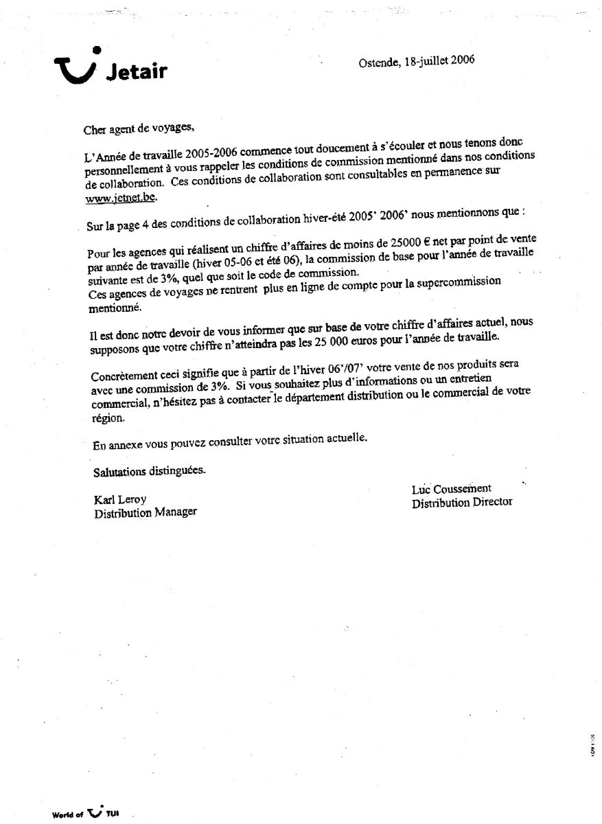3%, tel est le taux de commission que Jetair allouera aux AGV qui réalisent un chiffre d’affaires minimum avec son groupe. En mars dernier déjà, l’opérateur nous avait donné cette information. Aujourd’hui, nous pouvons publier une lettre de rappel de ce principe (téléchargeable en bas de page) que ce TO a envoyée à plusieurs AGV.
