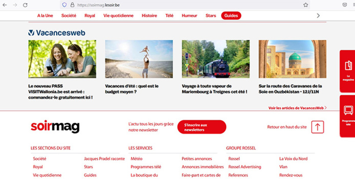 Que ce soit la mise en valeur d’un événement particulier ou d’une saison touristique complète, Vacancesweb.be rédige et publie différents reportages et articles thématisés avec des objectifs de vues et clics garantis. Les contenus sont adaptés au marché francophone et néerlandophone en fonction de leur attractivité.