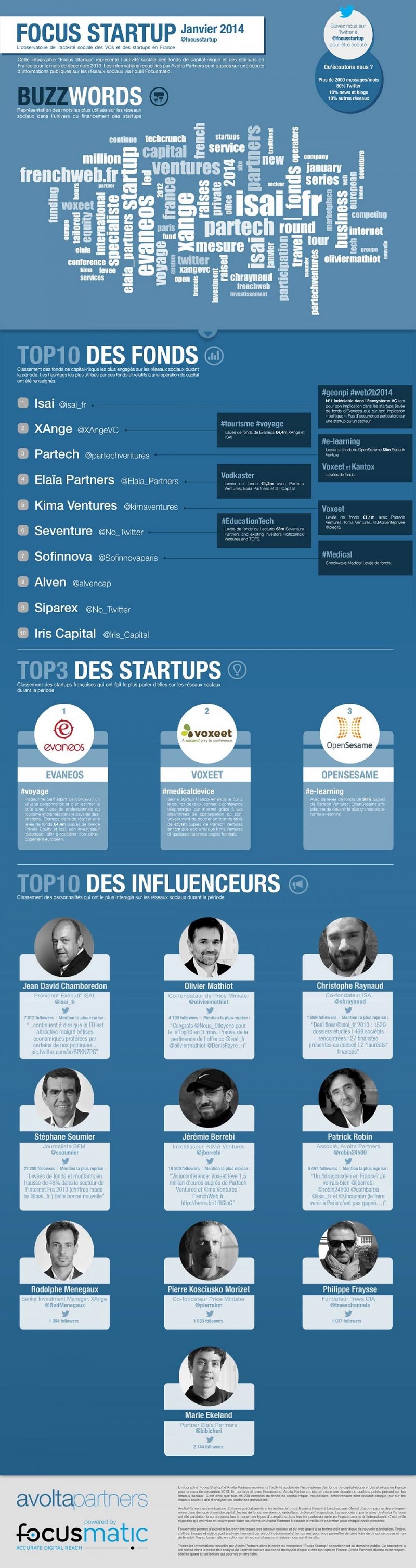 En première position des start-ups qui ont fait le plus parler d’elles sur les réseaux sociaux en janvier 2014, est nommée Evaneos.