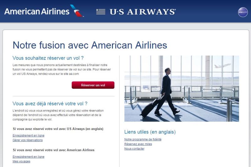 Le site internet d'US Airways renvoie déjà vers celui d'American Airlines - DR : Capture d'écran site US Airways