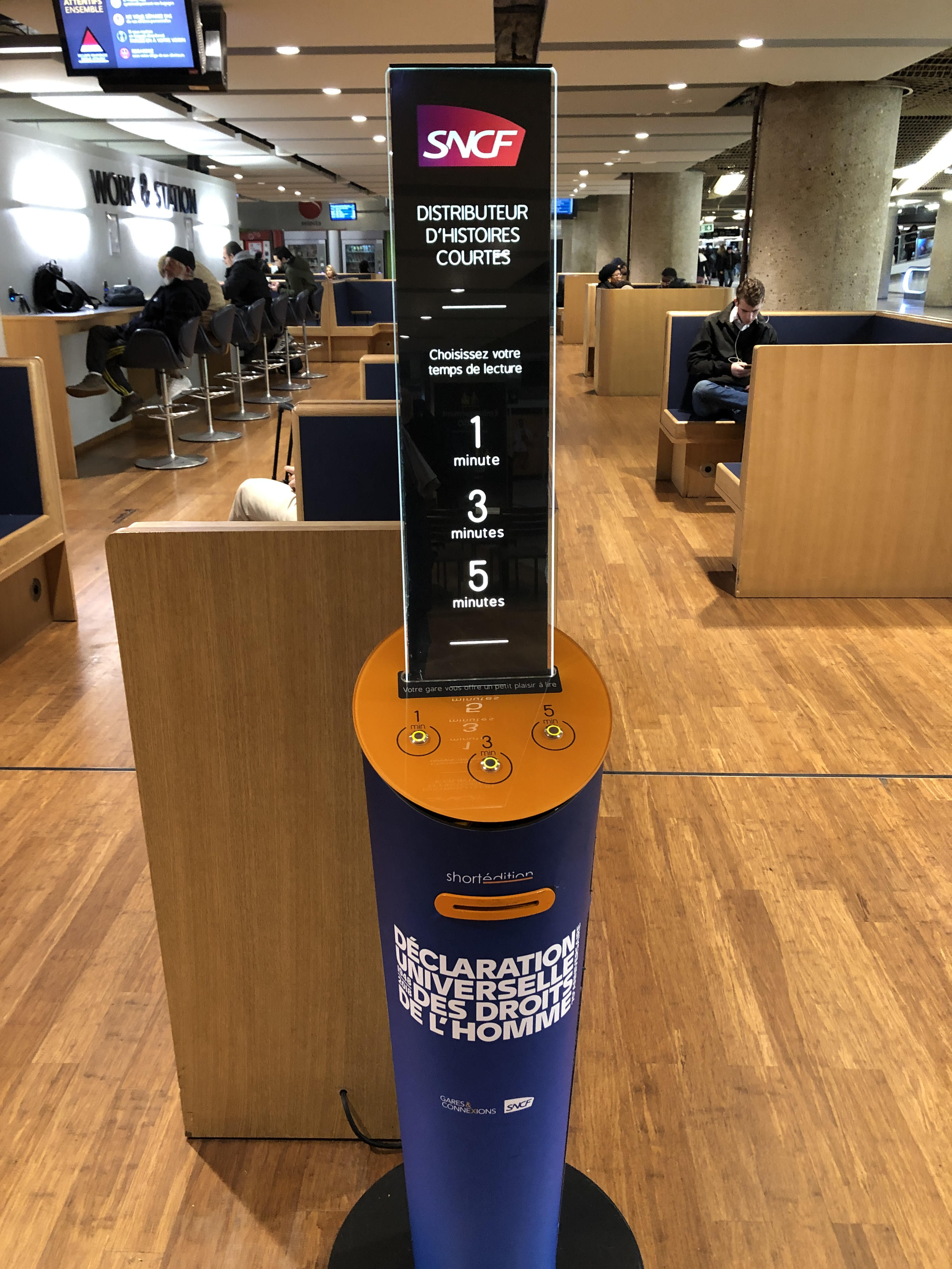 Voilà une idée que n’auraient pas renié les figures de la 4e République, férue d’éducation et de culture populaire : proposer aux passagers qui attendent leur train de se détendre (et se cultiver) en lisant des histoires courtes (2, 3 ou 5’).