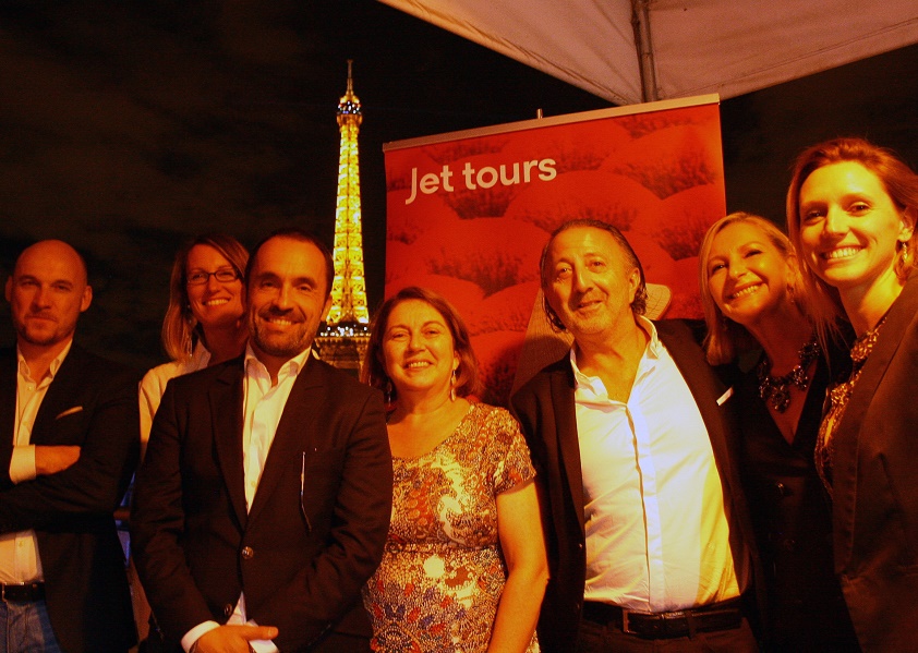 Au Roof Top, quai de grenelle à Paris, l’équipe Jet Tours, (de gauche à droite) Jean-Emmanuel Chometon, directeur TO, Pauline Rouri, directrice marketing, Nicolas Delord, PDG, Hélène Pouvesle, directrice production circuits, Stephan Roiena, directeur des clubs, Louisa Rouar, directrice commercial, Delphine Lacroix de Peretti, responsable communication.