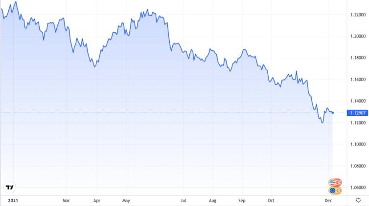 Cette baisse doit toutefois être considérée dans un contexte plus large. L’euro reste encore plus fort qu’il y a deux ans, lorsqu’il valait environ 1,10 dollar. Il a également connu une forte volatilité hebdomadaire entre février et avril 2020, au début de la pandémie de Covid-19, oscillant entre 1,07 et 1,13 dollar à ce jour (au 6 décembre), à une époque où de nombreux investisseurs se réfugiaient dans la devise américaine et où l’incertitude régnait quant aux conséquences des confinements.