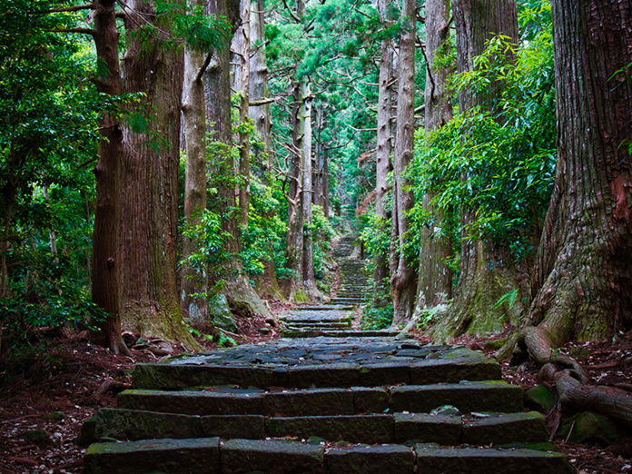 Situé au sud de la péninsule de Kii, Kumano Kodo est un réseau de sentiers de pèlerinage classé au patrimoine mondial de l'UNESCO depuis 2004. Ces chemins, empruntés depuis des siècles par les pèlerins, serpentent à travers des forêts anciennes, des montagnes sacrées, et des rivières cristallines vers les trois grands sanctuaires Kumano Sanzan. Kumano Kodo est parfait pour les randonneurs en quête de spiritualité et de connexion avec la nature. Outre le sentier Nakahechi, le plus populaire et le plus accessible, la route Kohechi, plus exigeante, connecte le Grand Sanctuaire Kumano Hongu Taisha et le mont Koyasan où il est possible de séjourner dans un temple, rythmé par les méditations Ajikan et les repas végétariens, soit, un esprit sain dans un corps sain ! Le partenariat touristique avec Saint-Jacques de Compostelle permet aux pèlerins des deux chemins d’obtenir le statut de double pèlerin.