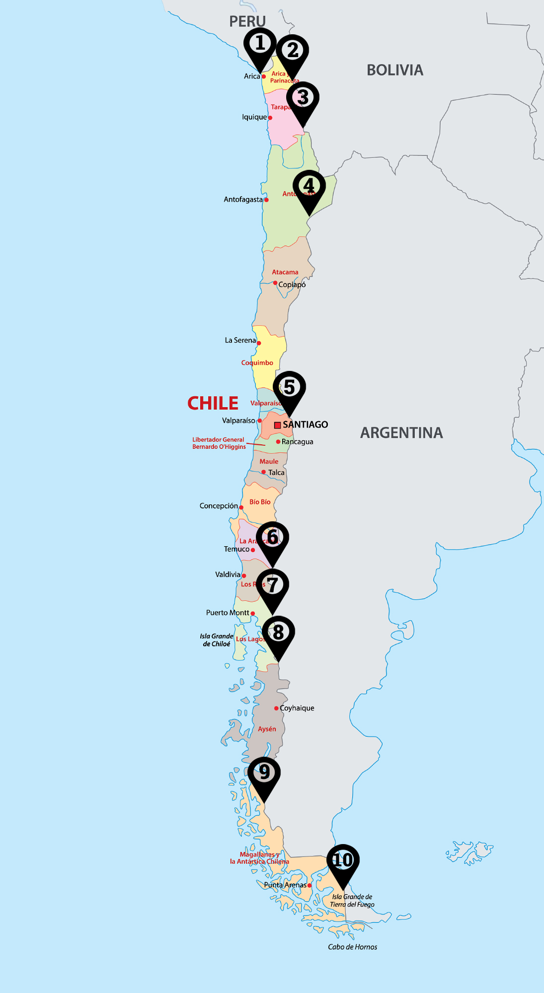 Cette liste de 10 passages frontières sont la possibilité de programmer des voyages combinés avec toutes les régions du Chili.