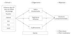 Ainsi, à l’aune de ces travaux, nous suggérons que le toucher, l’odorat, l’ouïe, la vue et le goût, stimulés par les objets connectés au sein des hôtels, influencent positivement la valeur émotionnelle du client, son expérience affective mais aussi son bien-être au sein d’un lieu physique (la chambre, le hall, le restaurant de l’hôtel, etc.).
