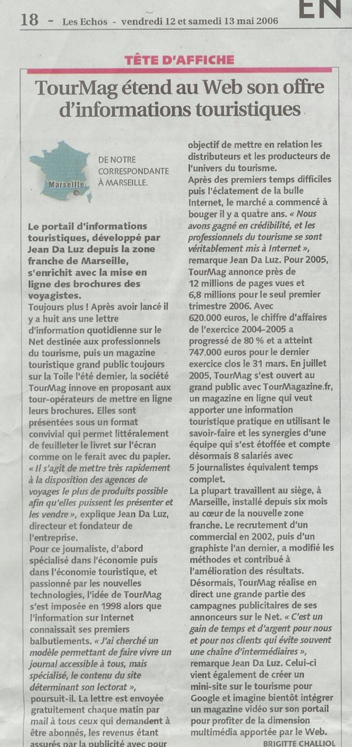 Dans son article du 12 mai dernier, ( téléchargeable en bas de page) le quotidien économique national qui retrace l’historique de l’entreprise parle des brochures « présentées sous un format convivial qui permettent littéralement de feuilleter le livret sur l’écran comme on le ferait avec du papier… » Nous en sommes très flattés.