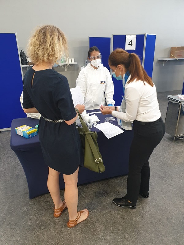 Après la prise de température, chacun se dirige vers le passage obligé du test antigénique - DR : C.E.