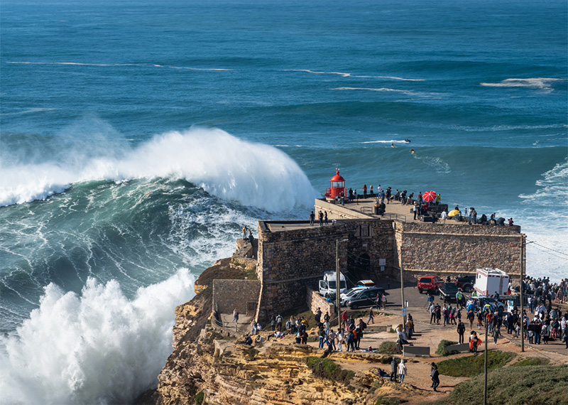 Praia do Norte est aujourd’hui une référence mondiale du surf, surnommée le temple des vagues géantes. Le secret de ces vagues hors énormes ? Le célèbre Canhão da Nazaré, un phénomène géologique sous-marin qui amplifie la hauteur des vagues. Il s'agit du plus grand canyon submergé d'Europe, où chaque année, pendant les mois d'hiver, les vagues peuvent atteindre 30 mètres, attirant les soufis les plus courageux et offrant un spectacle impressionnant à ceux qui les observent depuis le fort.