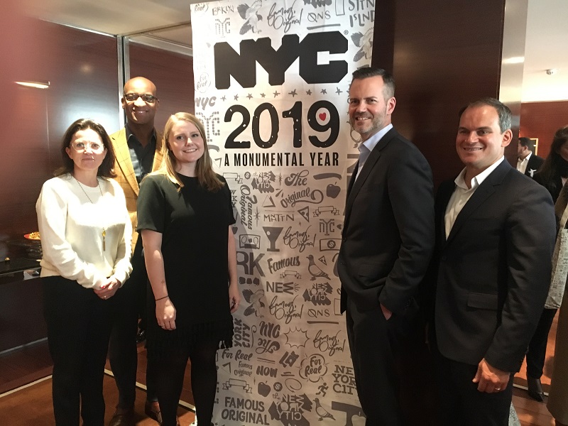 Sandrine Ledru, agence Article Onze Tourisme, Reginald Charlot, vice-président du développement en Europe, Britt Hijkoop (communication), Fred Dixon président et CEO de NYC & Company et Christopher Heywood Senior vice-president de la communication. - CL