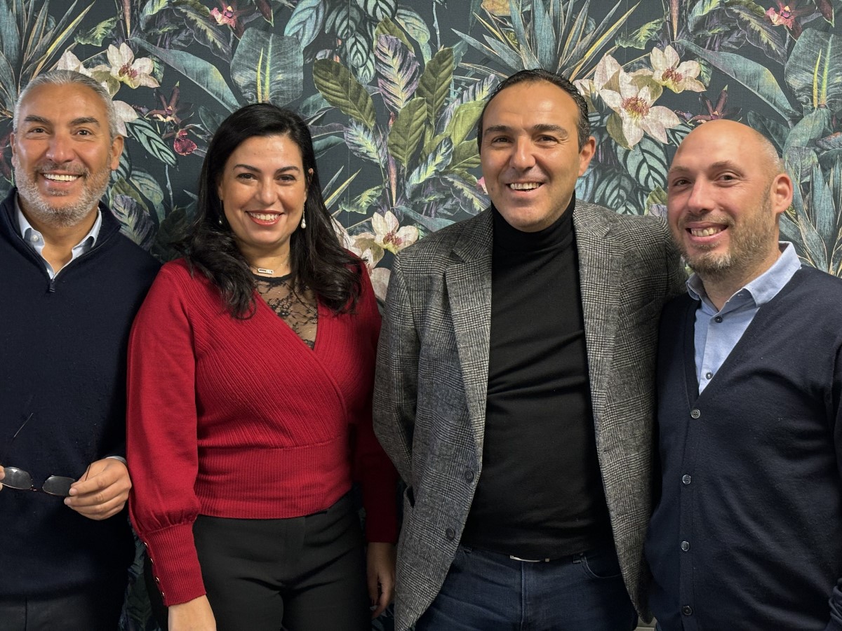 Raouf et Samia Benslimane, co-fondateurs d'Ô Voyages, en compagnie d'Ali, le directeur commercial, et à droite Raphaël Auvray, directeur long-courrier. ©David Savary.