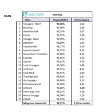 Voyages-sncf détient la palme pour cette période estivale en termes de disponibilité, avec un taux de 99,96% (et une performance de 2,02 secondes).