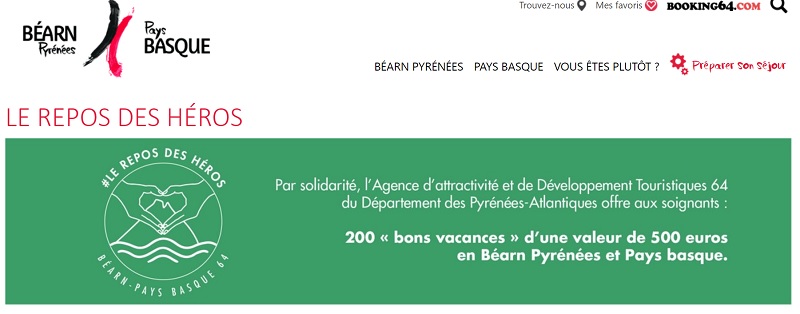 Après Logis, Accor ou encore Airbnb, c'est à l’Agence d’attractivité et de Développement Touristiques Béarn Pays basque 64 de mettre la main au carnet de chèque, avec son opération #LeReposDesHeros.