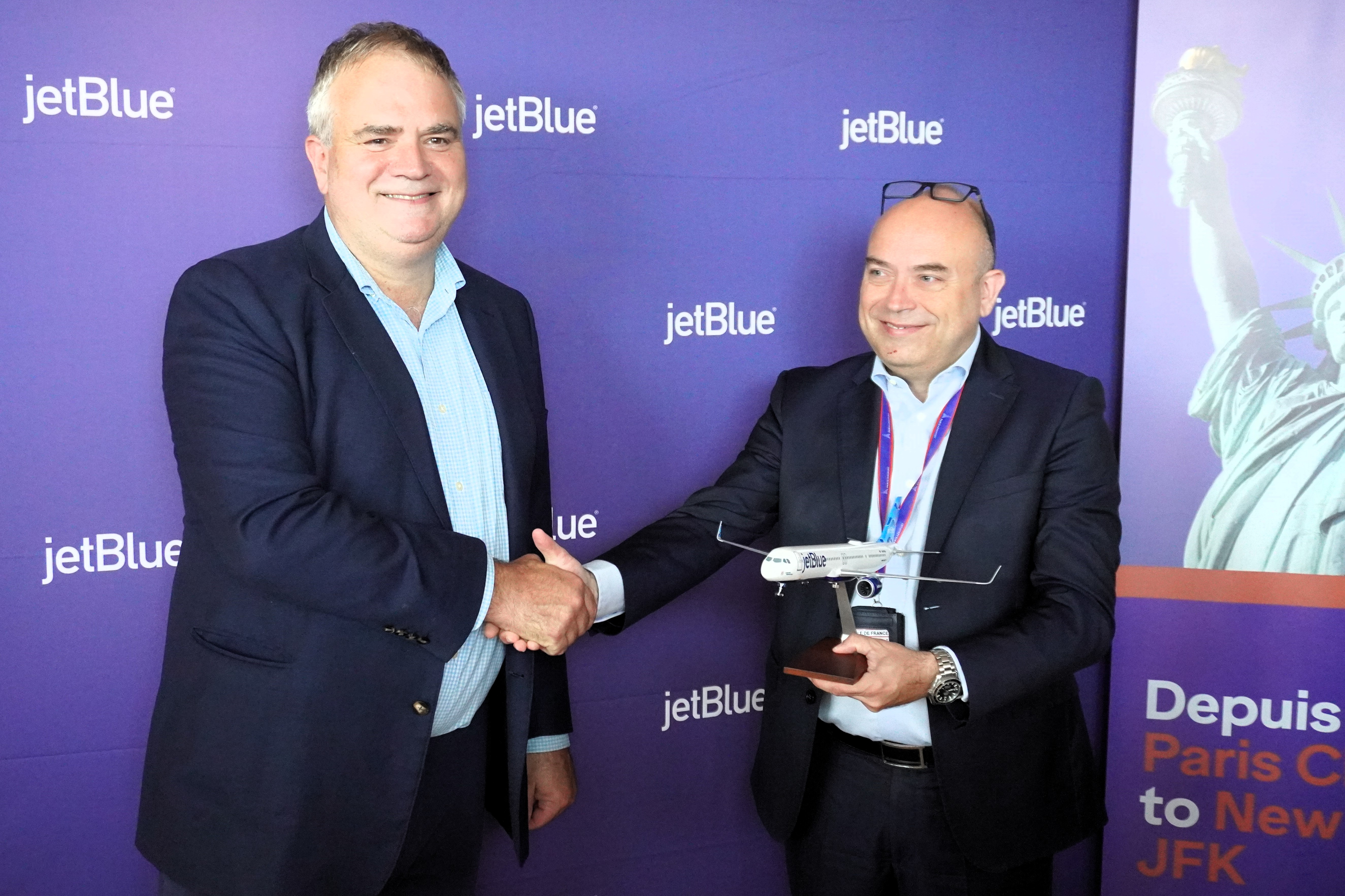 Décontracté et très excité par cette nouvelle route entre Paris et New York pour sa compagnie, le PDG de JetBlue et ses équipes avaient organisé une petite réception vendredi matin à l’arrivée de l’avion en provenance de « la grosse pomme ».