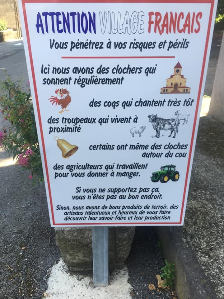Ici nous avons des clochers qui sonnent régulièrement, des coqs qui chantent très tôt, des troupeaux qui vivent à proximité, certains ont même des cloches autour du cou, des agriculteurs qui travaillent pour vous donner à manger. Si vous ne supportez pas ça vous n'êtes pas au bon endroit."