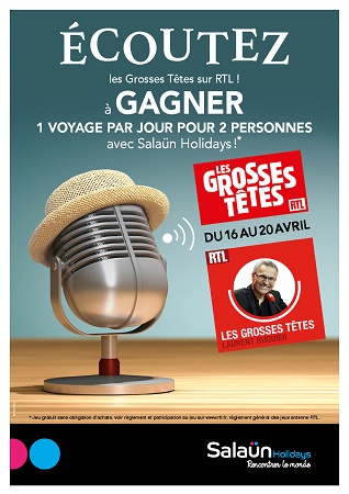 Salaün Holidays sera présent sur les ondes de RTL du 16 au 20 avril 2018 et du 21 au 25 mai 2018.