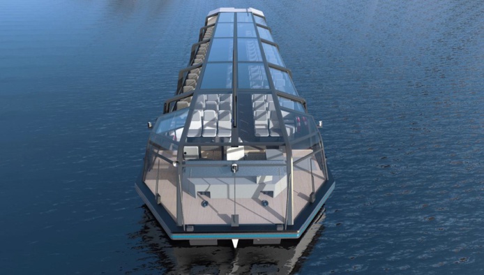 Le bateau sera entièrement vitré. Les vitres latérales seront escamotables dans les flancs du bateau et sur la partie supérieure seuls les éléments centraux du toit seront inamovibles