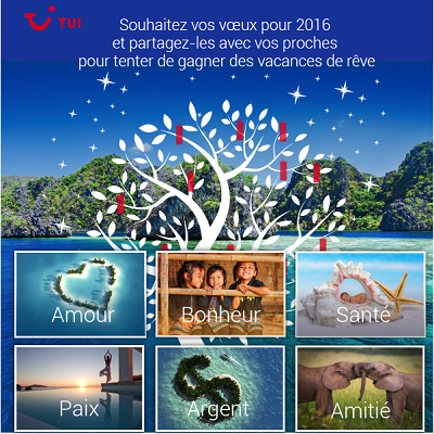 Cela s'effectue par le biais d'un site dédié, voeux.tui.fr, à partir du 28 décembre 2015. Ses utilisateurs peuvent y choisir parmi 7 thèmes représentés sous la forme de vignettes qui affichent des visuels d'inspiration issus du voyage.