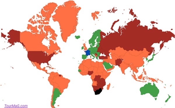 Voyage : les Etats-Unis classés en rouge, le Canada en orange