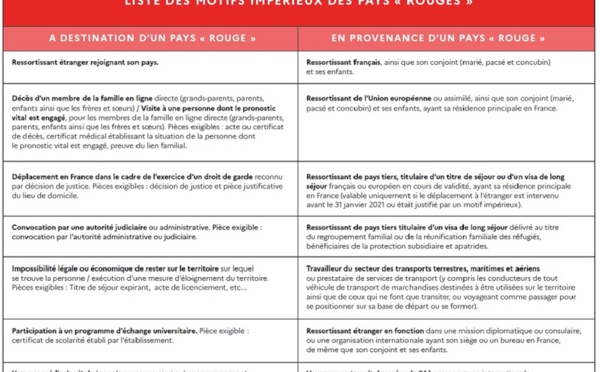 Voyages : quels motifs impérieux pour les pays orange et rouges ?