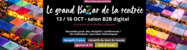 Du 13 au 16 octobre 2020, TogeZer organise Le Grand Bazar de la Rentrée. Cet événement digital de 4 jours permettra à une centaine de réceptifs de présenter leurs productions et nouveautés aux pros...