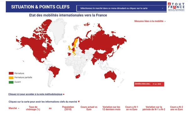 Atout France : une carte interactive sur les marchés internationaux pour anticiper la reprise