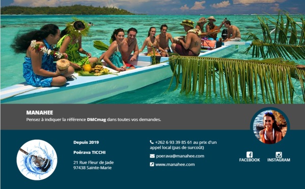 Manahee spécialiste de la Polynésie Française vient de rejoindre l'annuaire des réceptifs DMCMag.com. Manahee vient de débarquer sur DMCMag.com. Ce réceptif spécialiste de la Polynésie française...