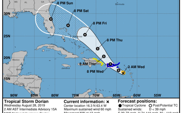 La tempête Dorian se dirige vers Porto Rico, la Rep Dom puis la Floride