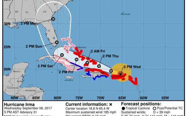 L'ouragan Irma, toujours en catégorie 5 va toucher les côtes du Bahamas et de la Floride vendredi 7 septembre 2017 et cette fin de semaine. Le Ministère des affaires étrangères a remis à jour ses...