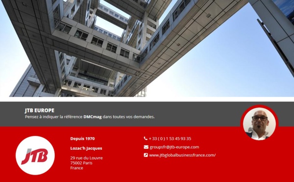 Le portail des DMC : DMCMag.com vient d'accueillir un nouveau réceptif dans la rubrique MICE : JTB Europe, réceptif Japon. La rubrique MICE du portail des DMC, DMCMag.com s'étoffe avec l'arrivée de...