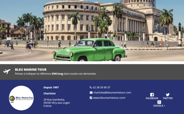 Bleu Marine Tour vient de rejoindre DMCMag.com. Le voyagiste est spécialiste des îles, de l'Afrique, et de l'Asie, et dispose de plusieurs succursales à la Réunion, en Martinique, en Guadeloupe et à...