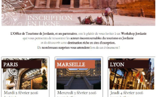L'office de tourisme de Jordanie partira en roadshow en France, accompagné de 6 partenaires : Royal Jordanian, Abercrombie & Kent, Al Thuraya, Golden Gate Tours, Millenium Tours, Pan East, et...