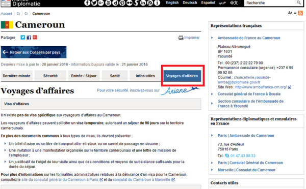 Quai d'Orsay : nouvel onglet voyages d'affaires dans les Conseils aux Voyageurs