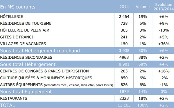 En 2014, le montant total des investissements touristiques en France avoisine les 13 milliards d’euros selon Atout France, dont près des deux tiers ont été apportés par les hébergements. Atout France...