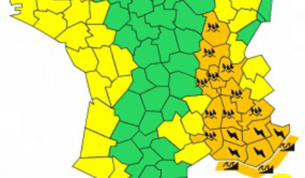 Météo France place 15 départements du Sud-Est et de l'Est de la France en vigilance orange aux pluies, orages et risques de vagues-submersion, ce mardi 4 novembre 2014. Ce mardi 4 novembre 2014,...