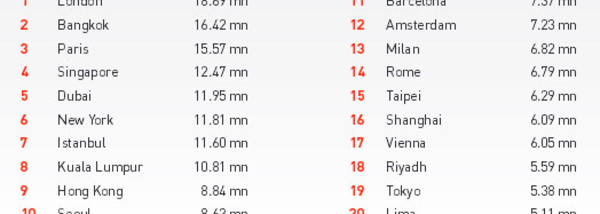 Londres, Bangkok et Paris : trio de tête des villes les plus visitées au monde en 2014