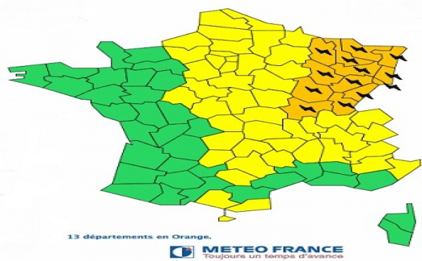 Météo France place 13 départements du Nord-Est et du Centre-Est en vigilance orange ce mercredi 24 juillet 2013. De violents orages pourraient s'y déclarer dans l'après-midi. Ce mercredi 24 juillet...