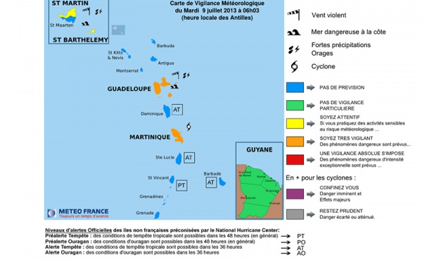 La Martinique et la Guadeloupe ont été placées en vigilance orange cyclone par Météo France, mardi 9 juillet 2013, en raison du passage de la tempête tropicale "Chantal". Elle atteindra l’est des...