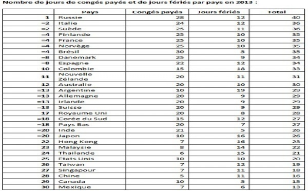 La Russie est le pays comptant le plus de congés payés et de jours fériés