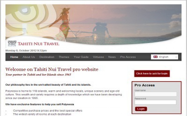 Ce mardi 9 octobre 2012, Tahiti Nui Travel, réceptif en Polynésie, annonce le lancement d'un nouveau site professionnel. Développé afin de donner des solutions pour faciliter la programmation et la...