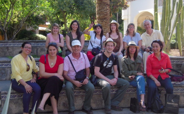 Ci-dessous, une photo du groupe dans un champ d’agave bleue (patrimoine culturel de l’humanité par l’UNESCO), aux alentours de Tequila.