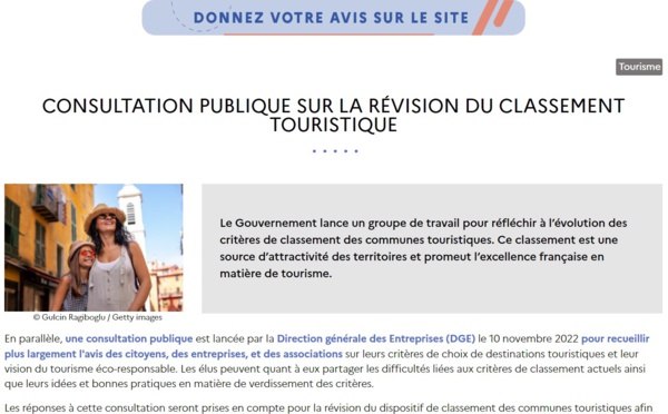 Après l'annonce par Olivia Grégoire de la création d'un groupe de travail chargé de la révision des critères de classement des communes touristiques, une grande consultation publique est lancée ce...